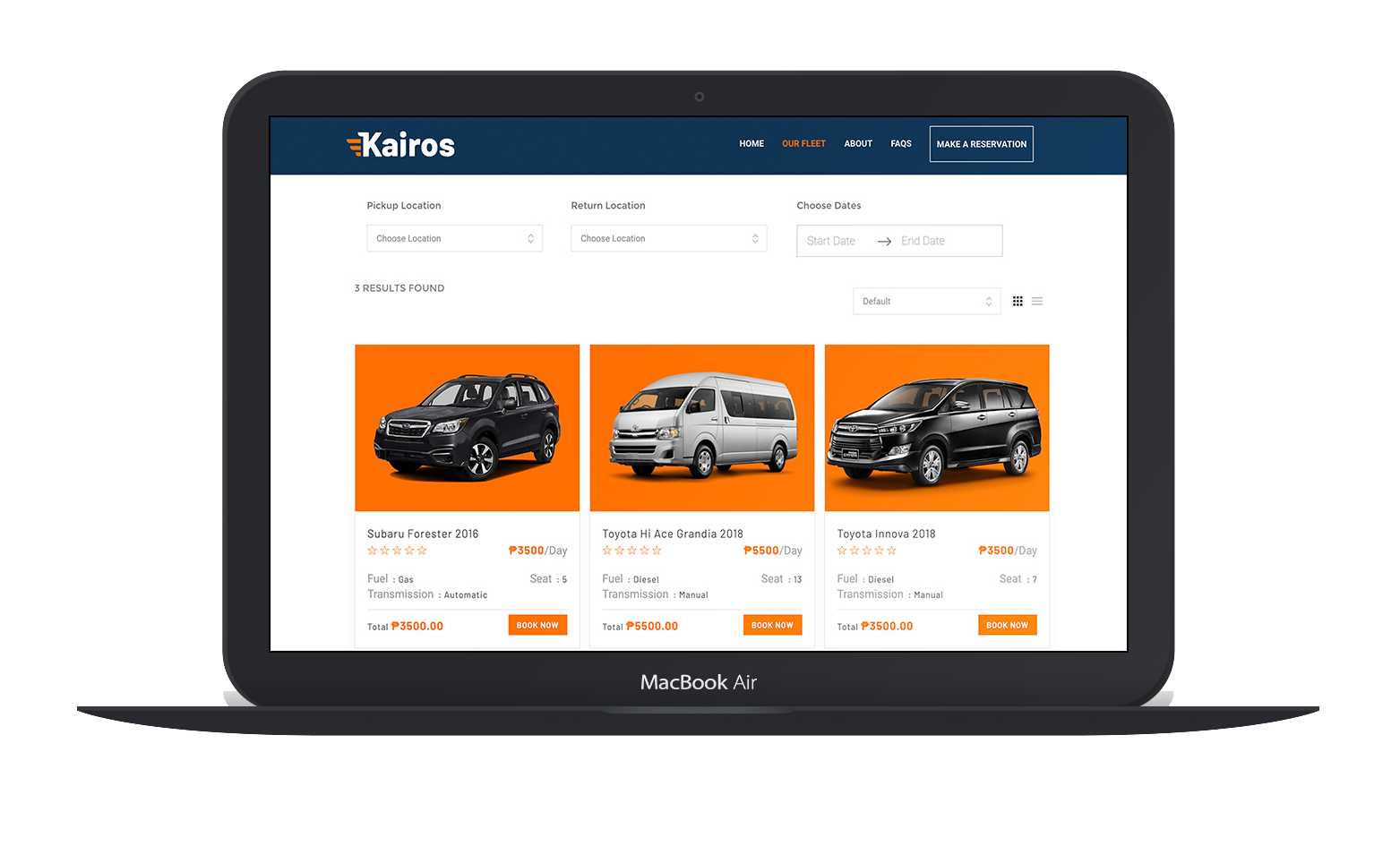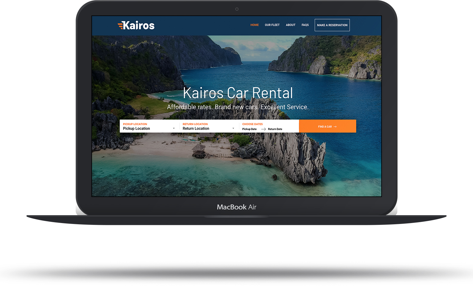We listened, learned, and found ourselves immersed in our client’s industry. After finding a firm brand footing, we forged our way from logo to a website that established Kairos as an expert at their field. We created their weg page in such a way that customers would find renting a car easy and convenient. These efforts were boosted with digital marketing efforts in the form of Facebook ads.